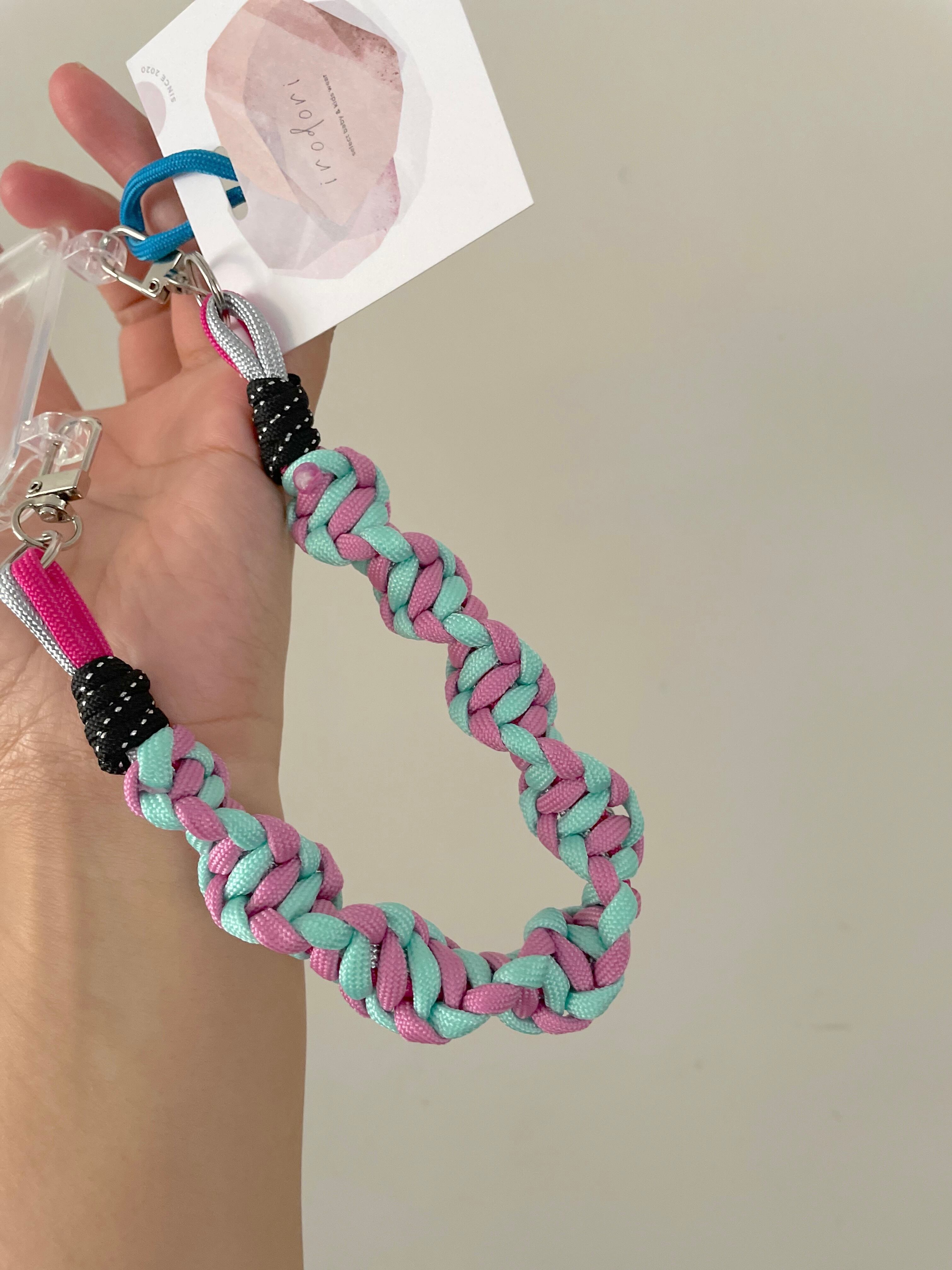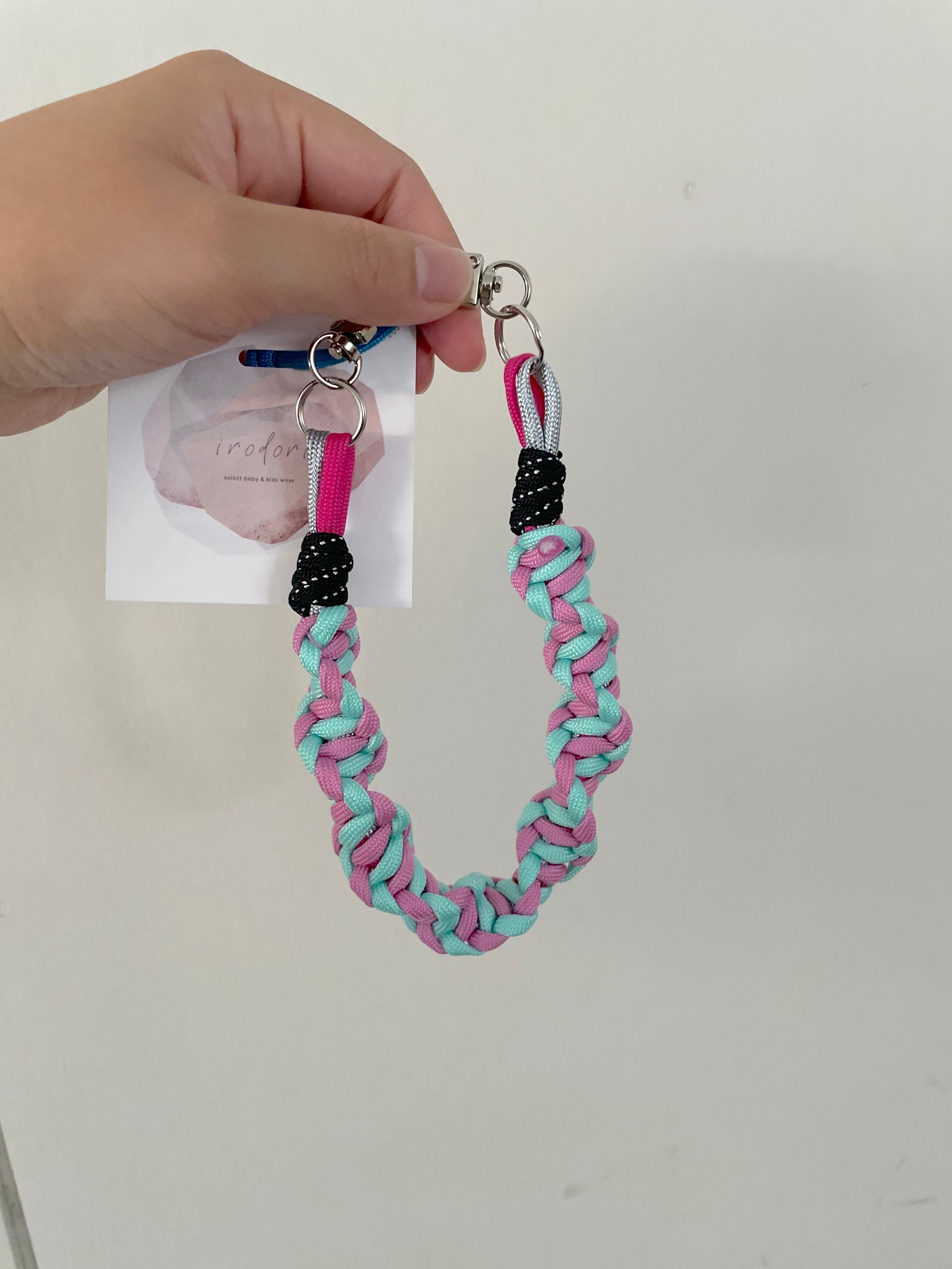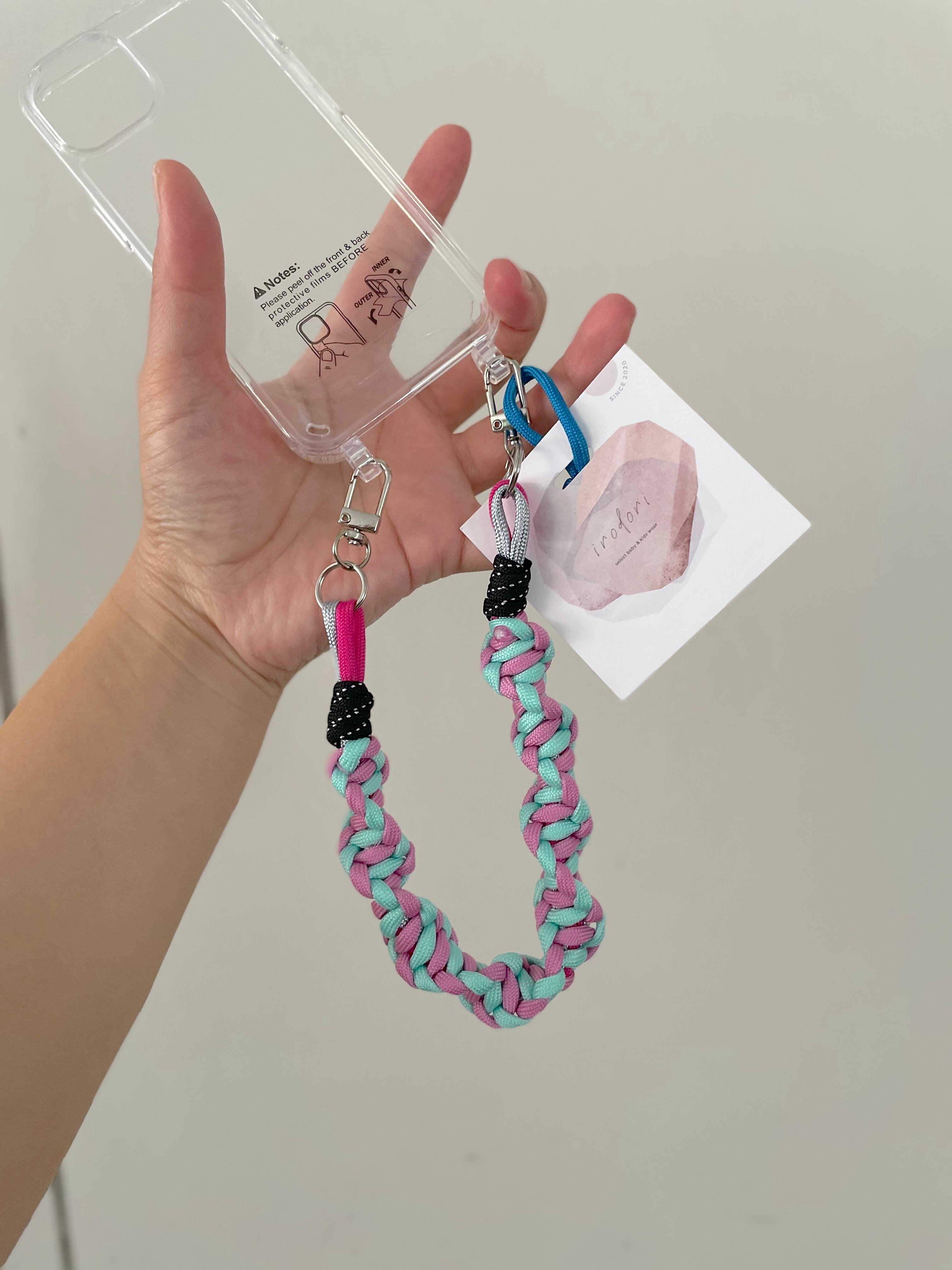 irodori code SHORTは、しなやかなパラコードと丁寧に編み上げられたスマホストラップです。手にフィットするシンプルなデザインで、スマホだけでなく、キー、小銭、カードなども収納可能なので、お出かけやお買い物にとても便利です。